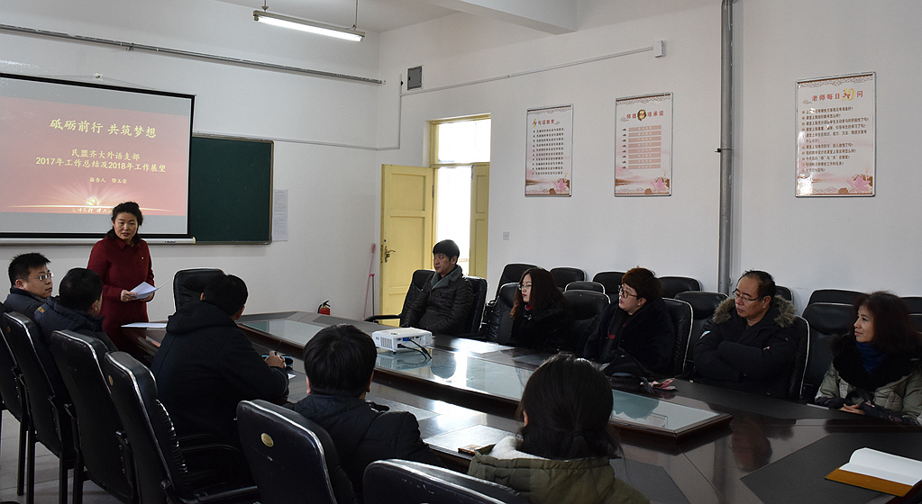 鄂玉荣代表民盟齐大外语支部进行了年度总结,外语支部盟员吴超做了“不忘初心,砥砺前行”为主题的学习党的十九大精神讲座。会后,民盟齐大外语支部与民革齐大支部进行跨党派间的学习交流联谊会。两个支部从民主党派的角度,共同深入探讨与交流了在新时期如何发挥民主监督、参政议政的民主党派职能等问题。